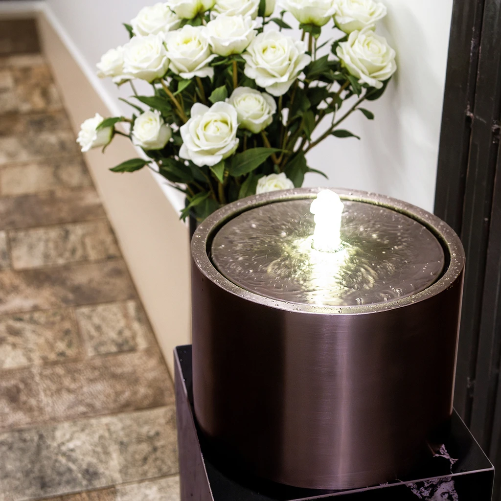SUPERIOR MATERIAL - The indoor waterfall fountain is made of stainless steel, lightweight and durable, ideal for home decoration. Mini humidifier with atomizer, it can help purify the air and create a warm and sweet ambience.