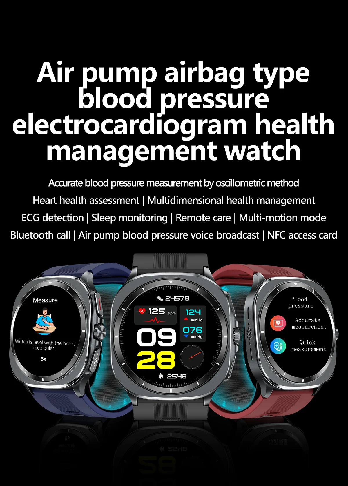 TK65 Smart Watch for Men Air Pump Air Bag Fitness Tracker ECG Blood Pressure Heartrate Glu Monitoring TK65 Smart Watches