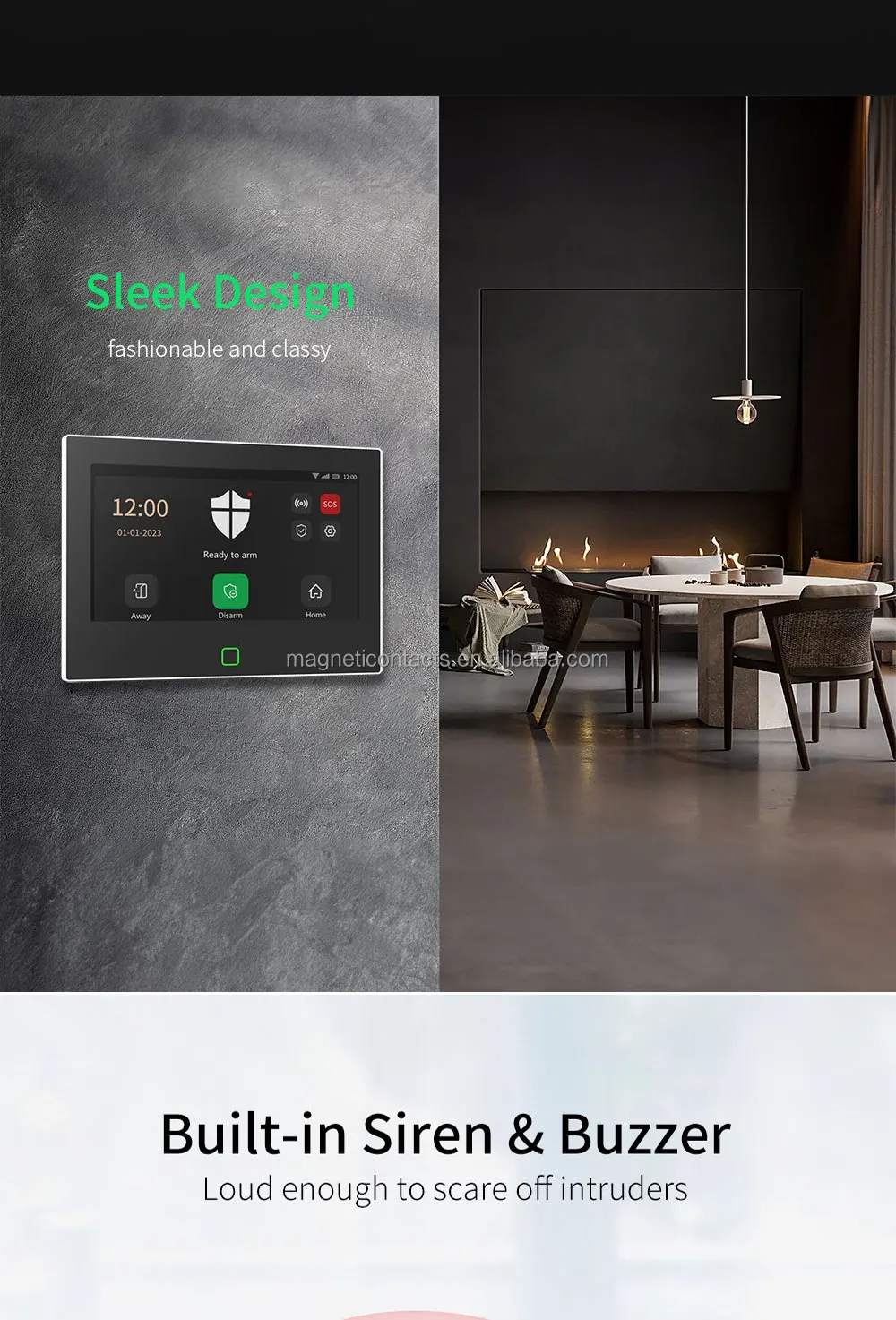 Built-in 115-decibel siren & Buzzer, the sound is loud and penetrating, letting you know the abnormal situation in your home at the first time.