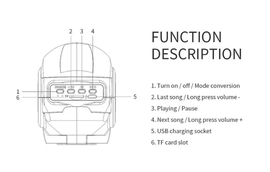 2. High power , Speaker with LED colorful lights, lights will jump with the music. 3. Built in stereo and 360 ° stereo are provided. 4. Simple key control, you can press the button to turn on / off, play / pause, switch mode, skip songs, adjust volume, etc. 5. Support mp3, wma, WAV, FLAC, ape format music files. 6. Support TF card or misro SD card and USB 2.0 disk plug and play. 7. Bluetooth 5.0, compatible with all Bluetooth devices. 8. TWS function , you can connect two speakers to synchronize with a phone. 9. Simple key control , you can press the button to turn on / off, play /pause, switch mode, skip songs, adjust volume, etc. 10. The battery is 1200mAh, which can be recharged repeatedly and used for a long time. |