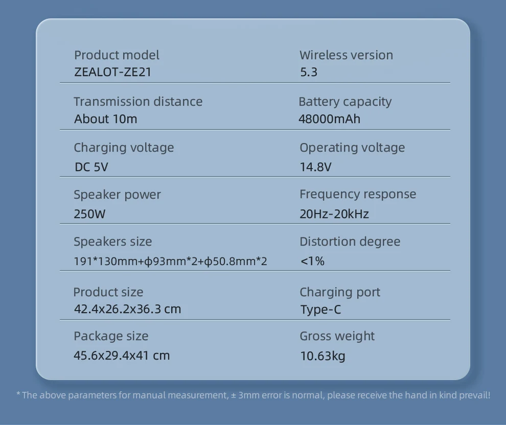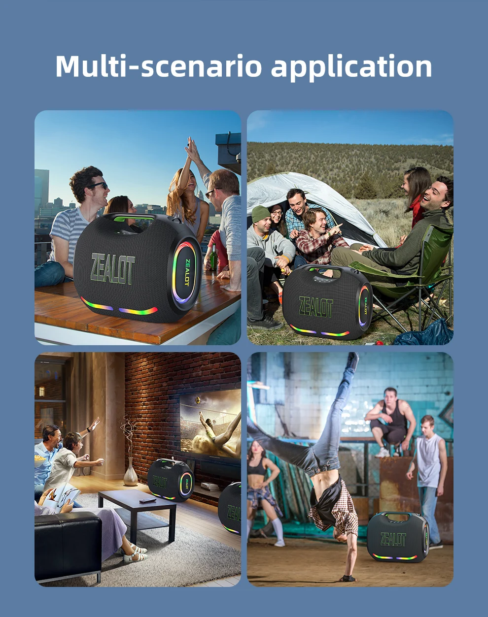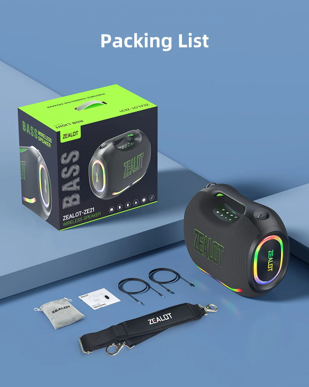 ZEALOT ZE21 250W Portable Speaker IPX7 Waterproof Outdoor Speaker Party Subwoofer Exlarge All-Round Bass RGB/TWS/TF/AUX/EQ